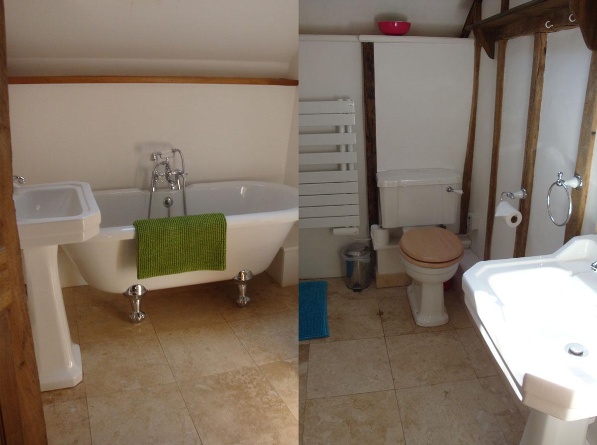 - Bedroom 3 with king-size double bed (5') and en suite Bathroom with bath, separate shower, WC and wash-basin